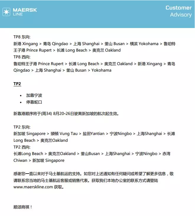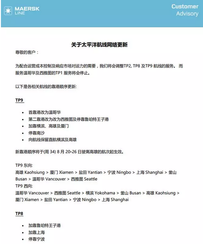 上海出口自2018年8月2日(周四)上海开航航次起,