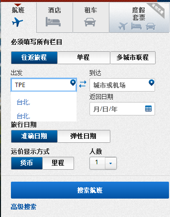 在达美航空、美国联合航空和美国航空公司官网的机票预订页面,台北后面已经删除了所在地“台湾”,不过,在这三家航空公司的目的地列表中,中国的城市,比如北京和上海等后面都不显示所在国为“中国”,而其它国家的城市都标注了所在国家,比如伦敦和东京后面分别显示所在国为“英国”和“日本”。 看上去,这几家美国航空公司似乎踩着线在最后一天陆续更改了网站,但其实,这种更改并不彻底。在达美和美国航空公司官网,虽然机票预订页面进行了修改,但在酒店预订页面,台北所在地后面依然显示为“台湾”。夏威夷航空公司官网上,酒店预订页面台北后面也显示为“台湾”。