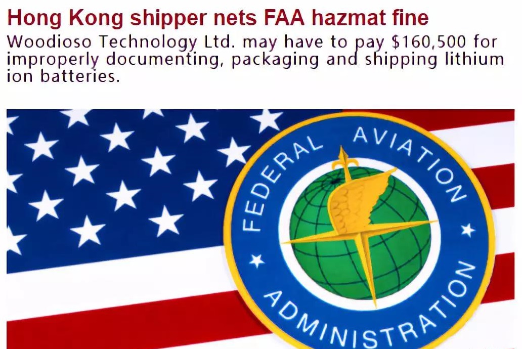 据搜航网最新获悉,这家名为Woodioso Technology的香港公司,最近因涉嫌违反危险品运输规则,被美国联邦航空管理局(FAA)罚款160500美元(折合人民币108万)!