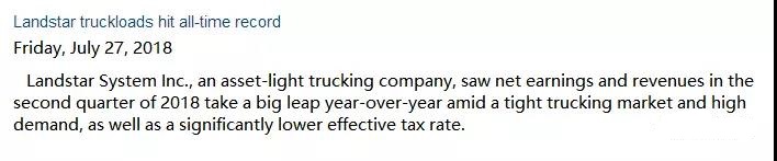 ▲Landstar卡车装载创下历史新高