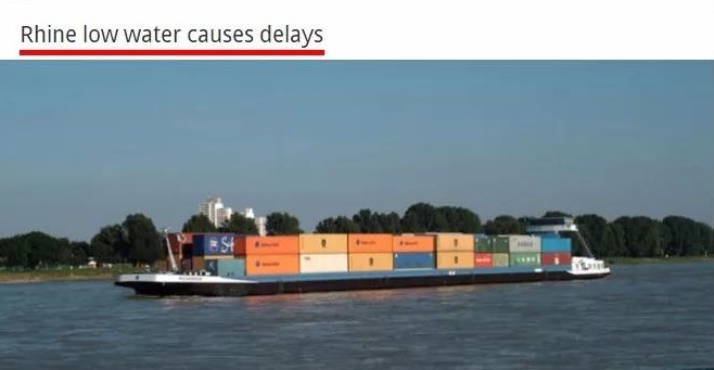 据悉,莱茵河上游地区的水位正接近一个通行和停航的临界点,有些往返于鹿特丹,安特卫普和其他欧洲偏港的驳船只能转载1/3的货物!甚至有些驳船被迫停止作业!