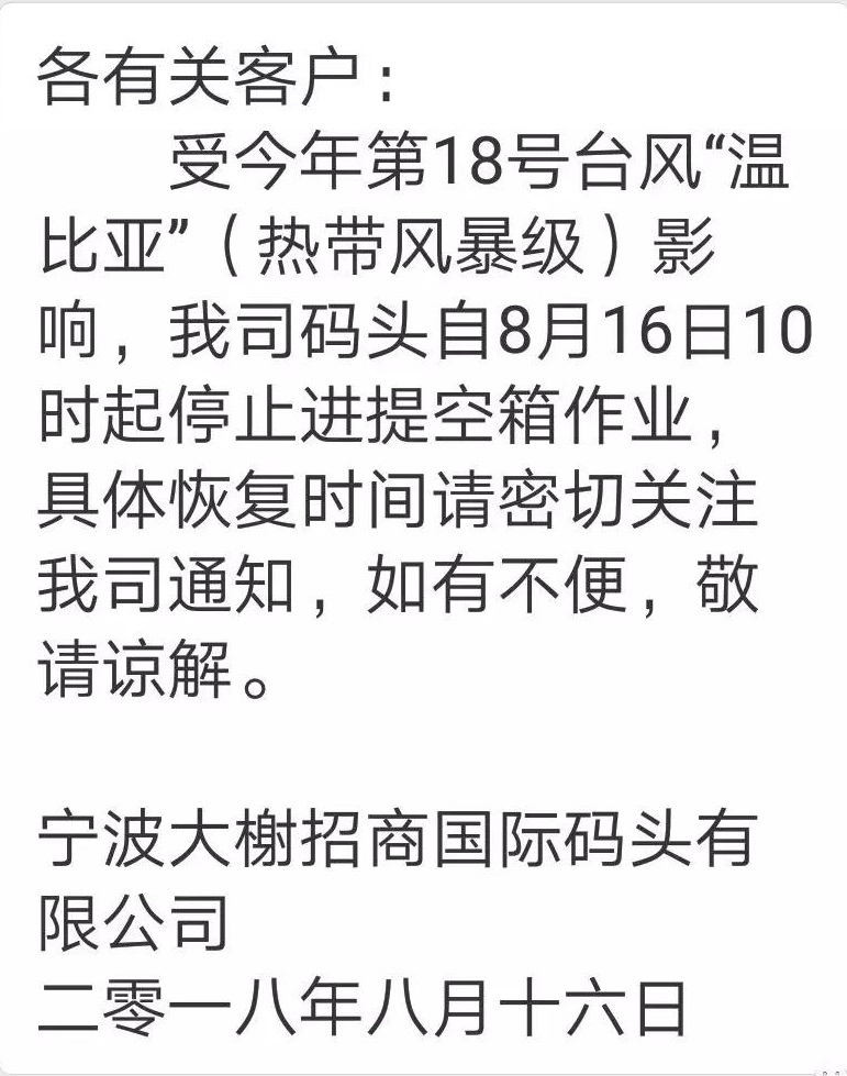 所以未来几天,请暂时 “忘记”(码头或因台风被迫关闭)上海宁波港, 其他口岸也要做好船期延误的心理准备!