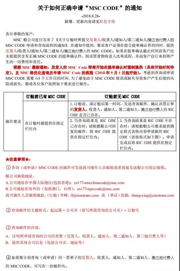 【船公司通知】EMC、MSK、SNL、MSC、COSCO通知汇总!