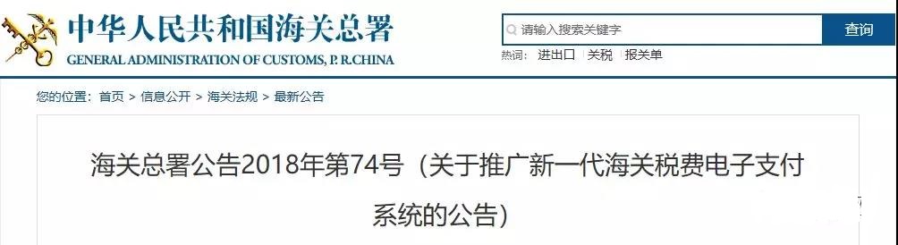 据悉,为进一步提升进出口货物收发货人支付海关税款的便捷性,提高税款入库效率,海关总署已经发布关于“在全国推广新一代海关税费电子支付系统” 的2018第74号令。