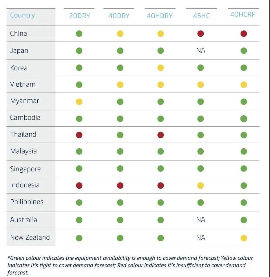 亚洲主要港口的集装箱可用性状况
