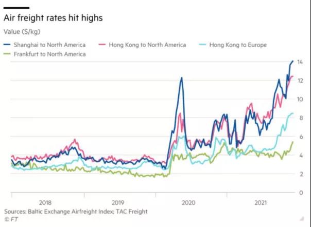 《金融时报》分析称,空运价格飙涨的原因有很多:
