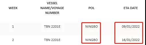 从m/v“MAERSK TAIKUNG”航次 0SSAVW1MA开始,ETA Shanghai 2021年12月19日。