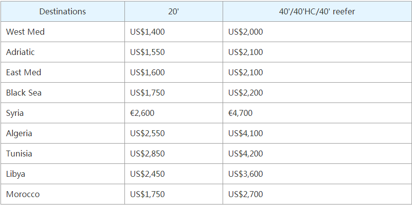 总部位于马赛的集装箱航运公司达飞轮船宣布了从所有亚洲主要港口到所有地中海基地港口(下面提到的地区)的新的各种运费(FAK)费率。